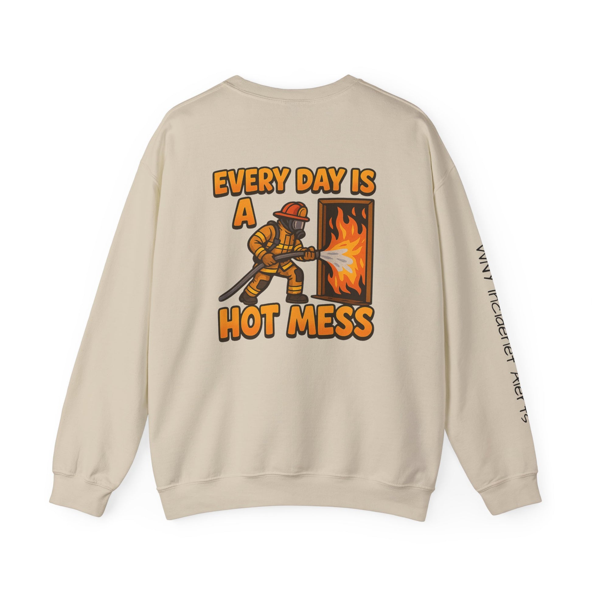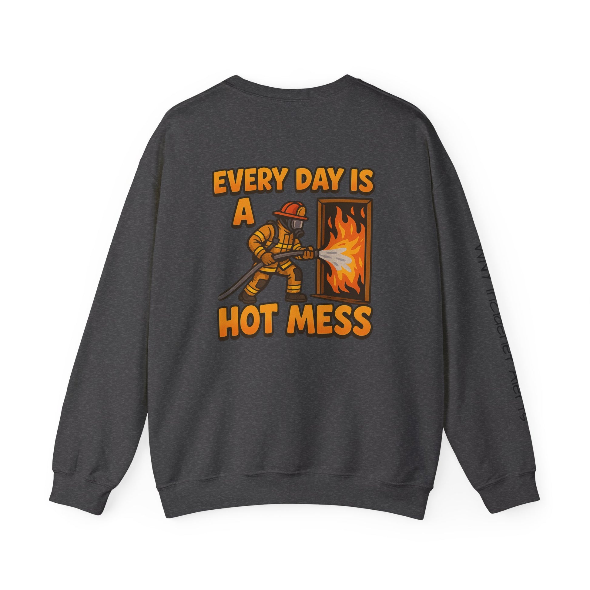 Soft, worn-in comfort with quiet, thoughtful details. This crewneck settles into your rotation — roomy without drowning, warm without weight. A subtle emblem rests over the heart while a slim line of text runs along the sleeve, like a private motto you catch when you roll up your cuffs. It carries the lived-in charm of someone who shows up for late-night shifts, early coffee runs, or slow walks home. Durable stitching and a clean neckline keep the silhouette sharp, while plush cotton-blend fleece keeps shoulders warm on chill evenings. Wear it with jeans, work boots, or pajama bottoms; it moves effortlessly from a shift at the station to a calm morning at home.