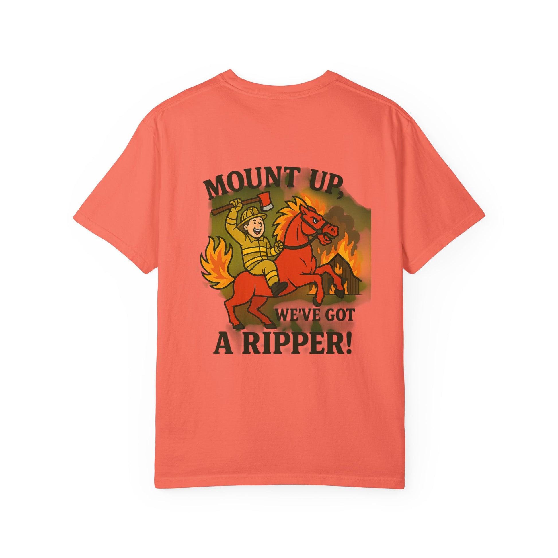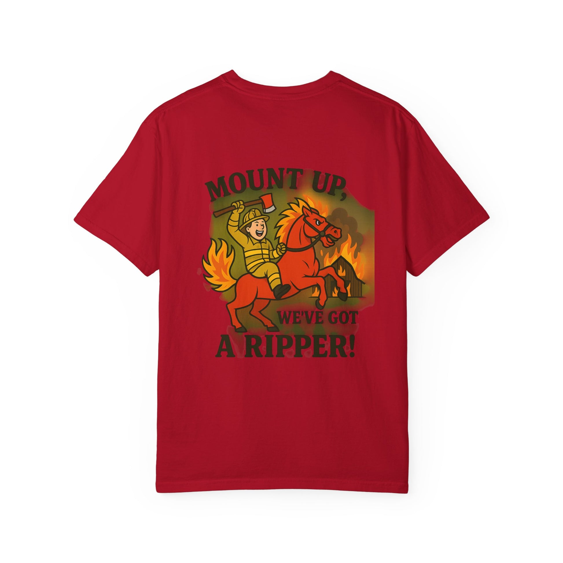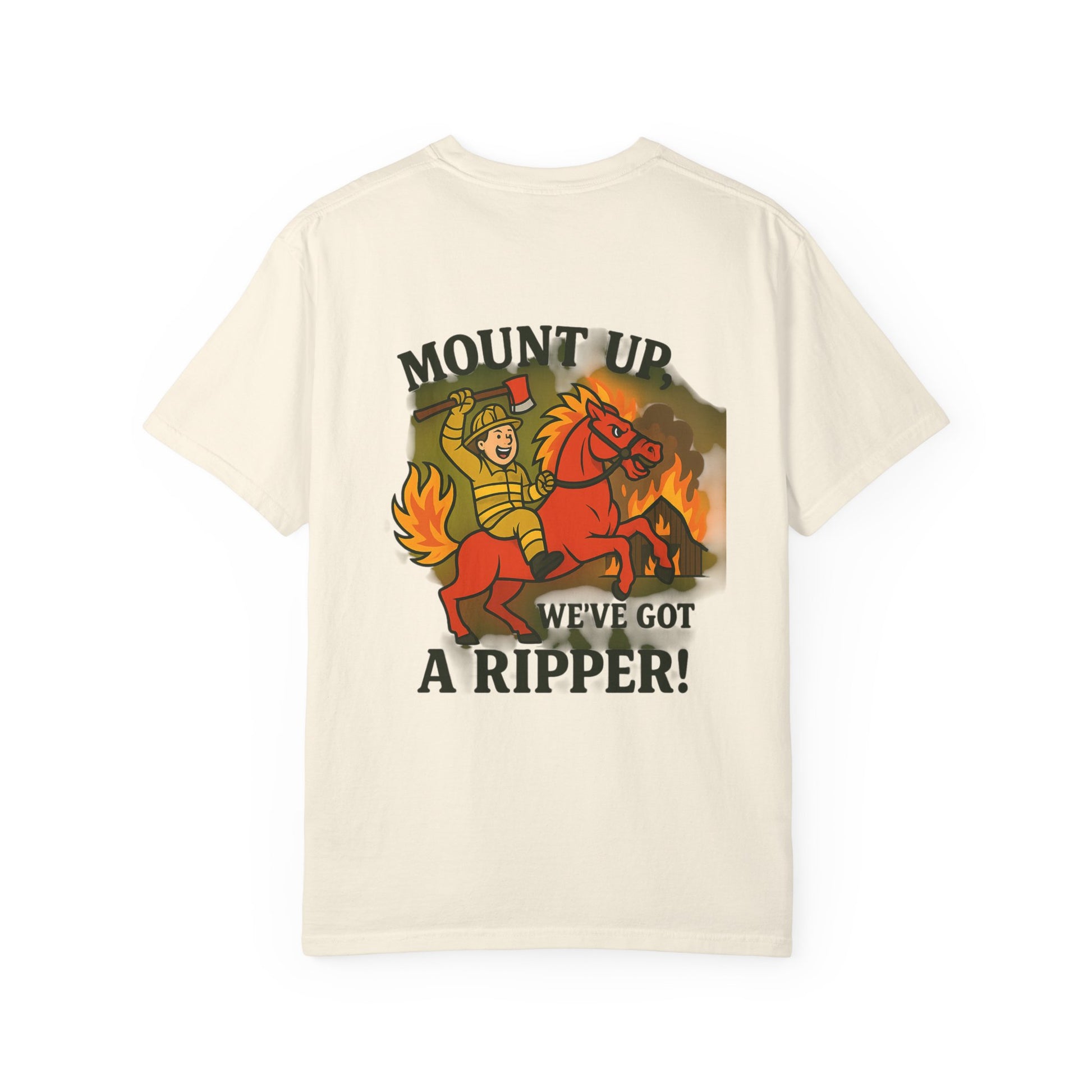Firefighter T-Shirt — "Mount Up We've Got a Ripper!" Graphic Tee
