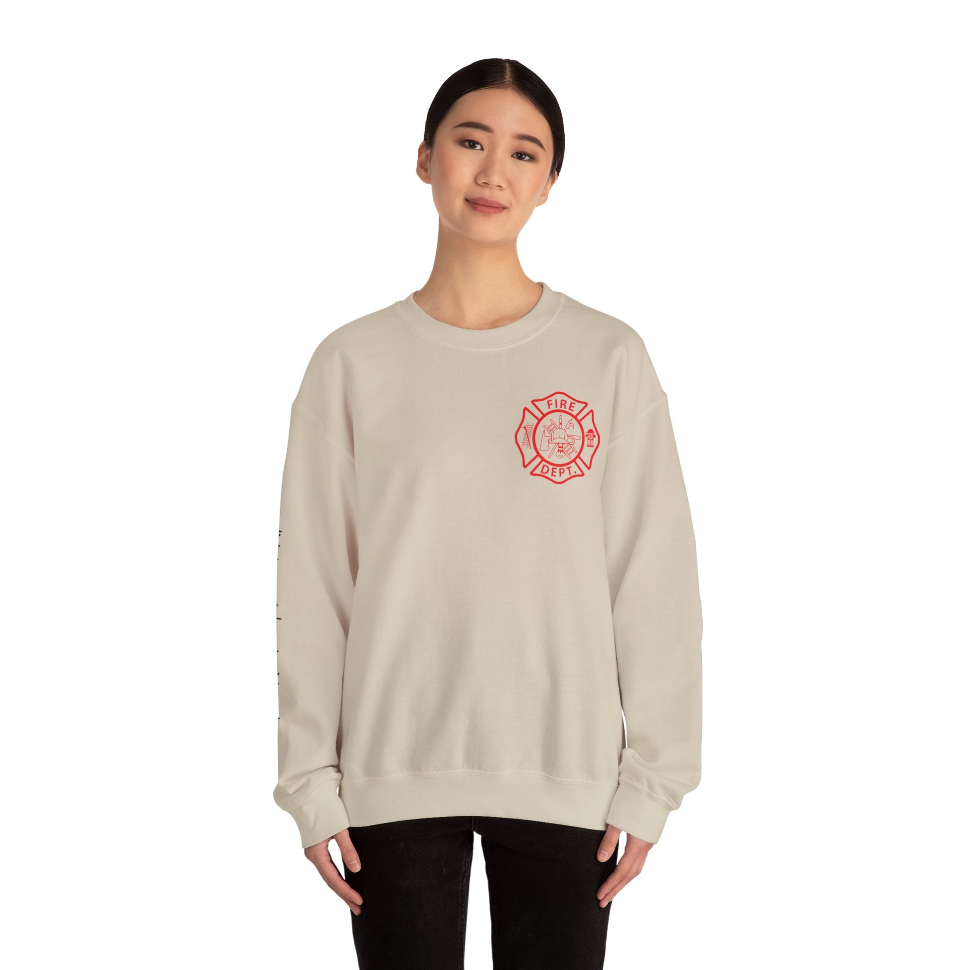 A soft, dependable crewneck built to honor the quiet strength of firefighters. This medium-weight sweatshirt wears like a companion you can reach for after a long shift. The front carries a small emblem over the heart; the back makes a bold, vintage-inspired statement with a classic firefighter Maltese and “Proud Firefighter” lettering. Subtle sleeve text adds a personal, lived-in feel. The fit is relaxed with a clean crew neckline and reinforced seams so it holds up through repeat wear and laundries. Breathable cotton-poly blend and OEKO‑TEX certified dyes mean comfort and responsible production are part of the story, too — a go-to layer for cool mornings, station downtime, or stepping out with that hard-earned confidence.